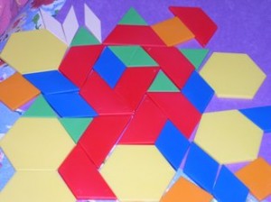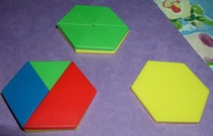 Umm Zakariyya – we have tangrams also – my older daughter especially loves these but youngest has a good eye for these as well. She actually takes them out and puts them in place by herself and gets deeply absorbed in working with them, masha’Allah.