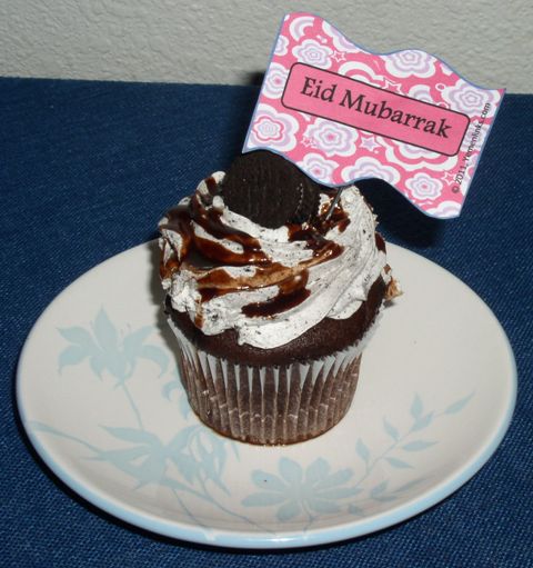 Anyway, I not only designed a large fanous pattern (in several colors and styles), I also designed a page with two smaller fanous. I also designed paper chains to link with them, a standing card decoration that says Eid Mubarrak and small flags that you can use to decorate cupcakes with or use as gift tags.