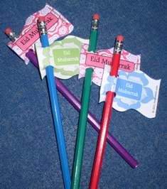 You can put the tags on pencils as small gifts to give at the masjid to spread Eid cheer.