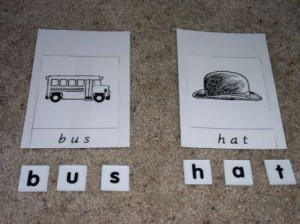 My daughter has been completely enthralled with learning how to write words. She is always asking me how to write a word – any word – so she can practice and write it in a notebook. So, I thought we could use these cards a second way. With this method, I will use just the cards that have the labels attached to the card. Then, using her movable alphabet, she can find the letters that she needs to make the words and then put them in order based on what she sees on the label. Perhaps later, she can also do this without the movable alphabet – instead just writing the names on slips of paper or in her notebook. I’m just hoping this will get her more actively involved in this process as I have found that most methods of learning reading and writing are not working for her – but this interests her. I also intend, insha’Allah to make these cards in Arabic so she can practice with her Arabic Movable alphabet as well.