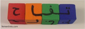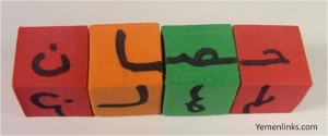 - Make flashcards with names of objects in Arabic. Write the name of each object at the bottom of the flashcard and have them make the word with the letter blocks.