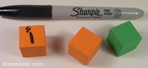 - Name a sound that one of the Arabic letters make and have them pick the block that shows that letter.