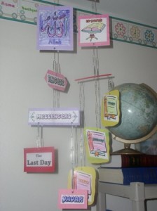 Now, I could have not post until Ramadan is over – but I hate to admit it – we are still trying to work hard and get through our school days. As much as I’d love to take a break (haven’t learned how to successfully yet!) – we just can’t. Anyway, on the Arabic Learning Materials yahoo group lately, there has been quite a bit of discussion about images and making learning materials interesting – like those materials used for teaching children English. It can be done – let’s get that straight right now – it just isn’t quick or easy. However, with a little work – your classroom (or home learning area) can actually rival anything you can purchase outside. And no – you do not have to be an expert, either.