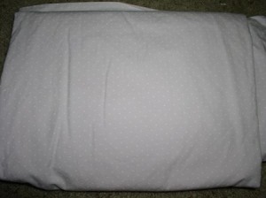 I had purchased another few fabrics (I was intending to use them to make prayer garments, but they looked so cute I am thinking of making matching dresses for the kiddos, insha’Allah). I took a picture of the fabric I found – just so you don’t think I’m crazy for using fabric from sheets to make clothing – the picture is at the top of this post. The fabric in the middle actually still has its price tag on it – $2.99 for a queen sheet.